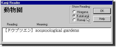 Hiragana, Katakana, or Romaji for the Kanji's reading.